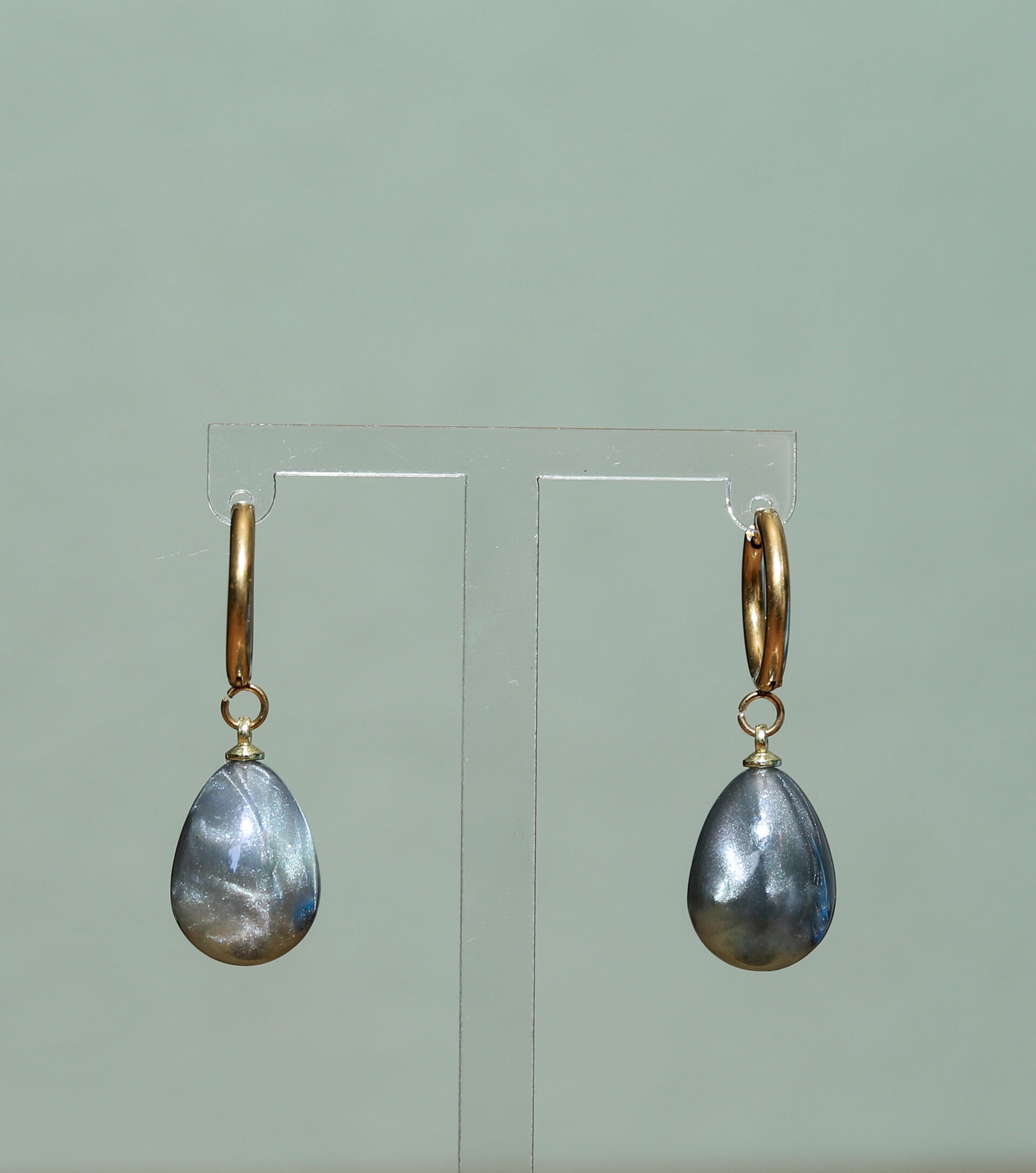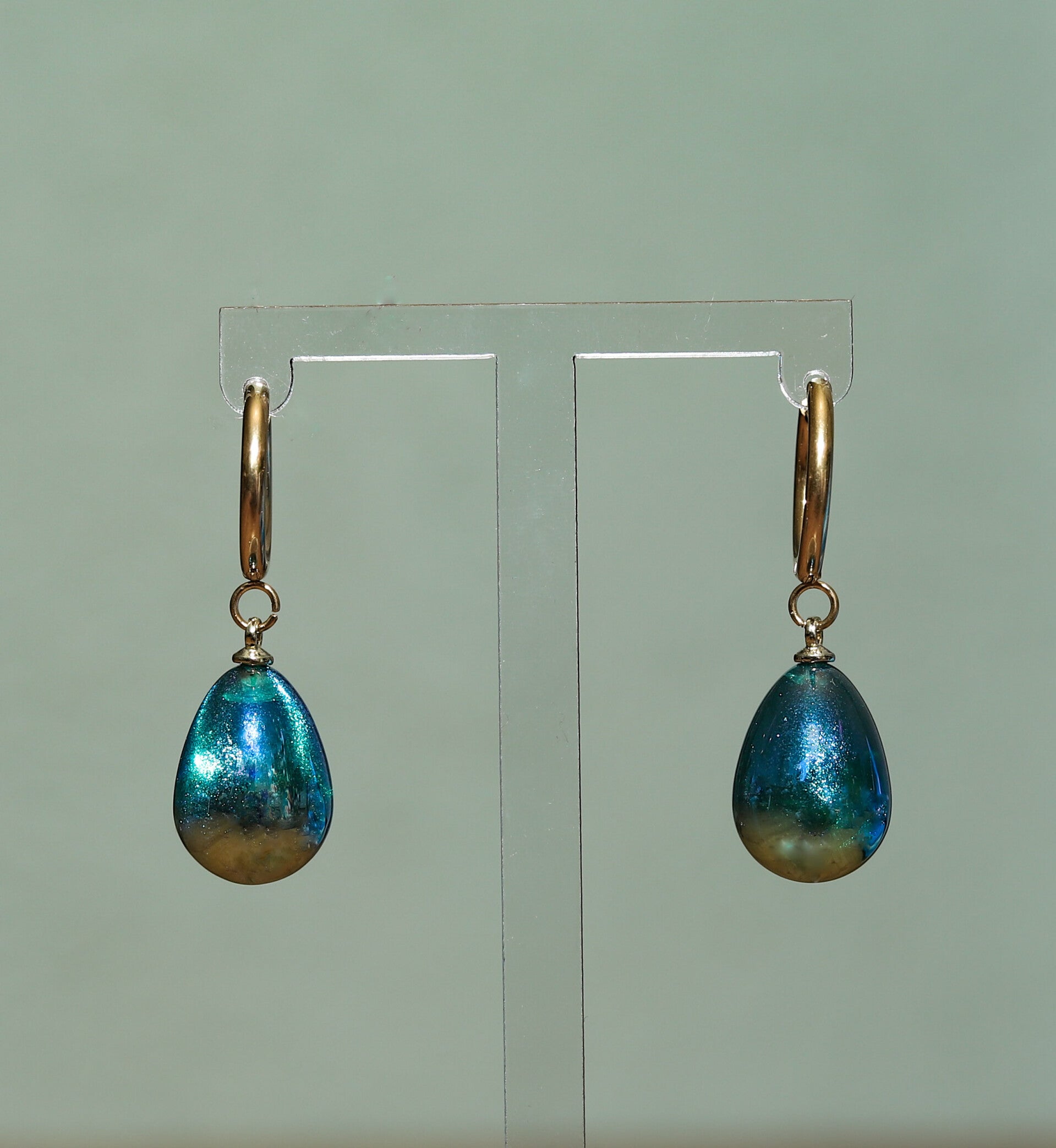 Stainless steel goudkleurige oorringetjes met prachtig gekleurde druppelvormige acryl kraal