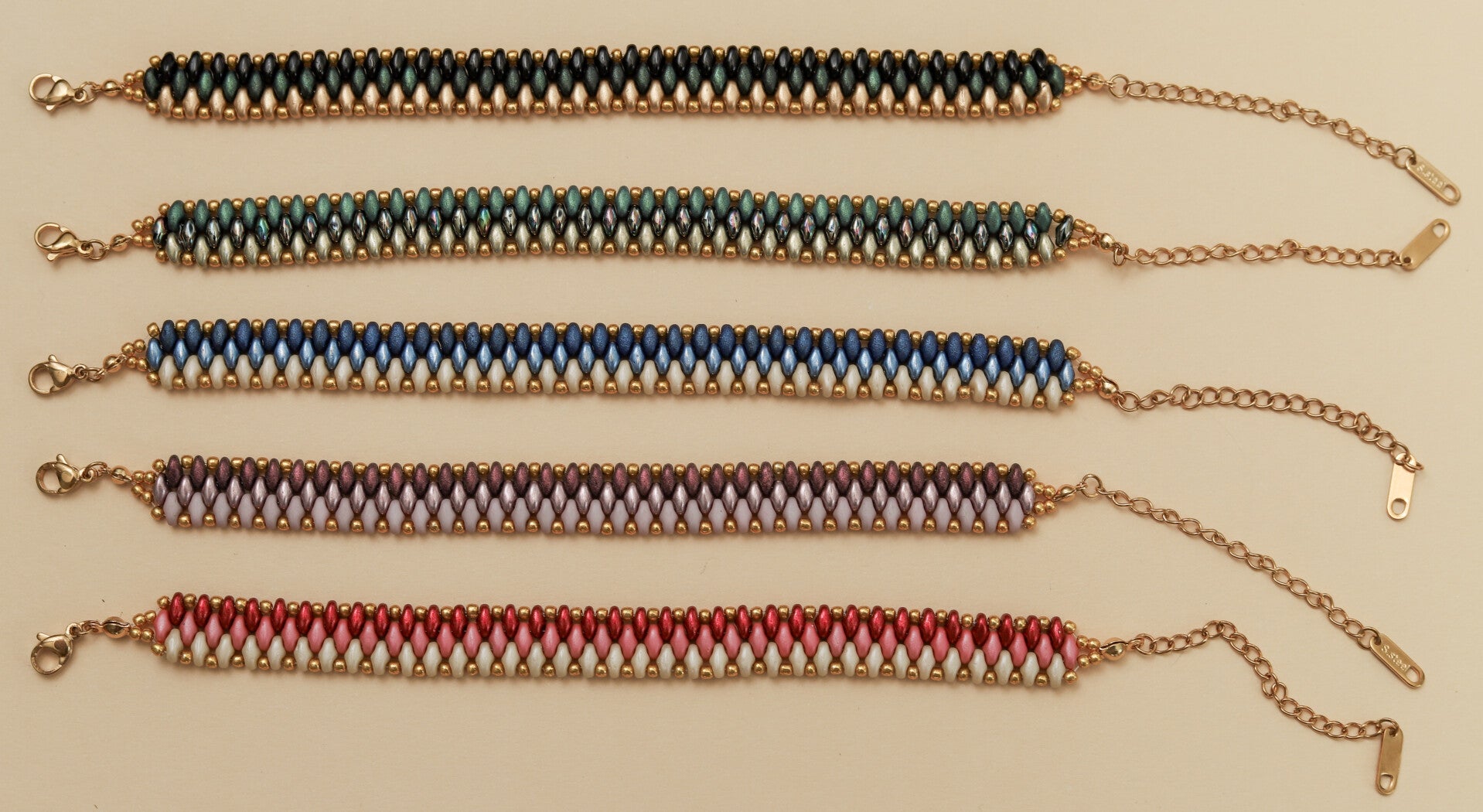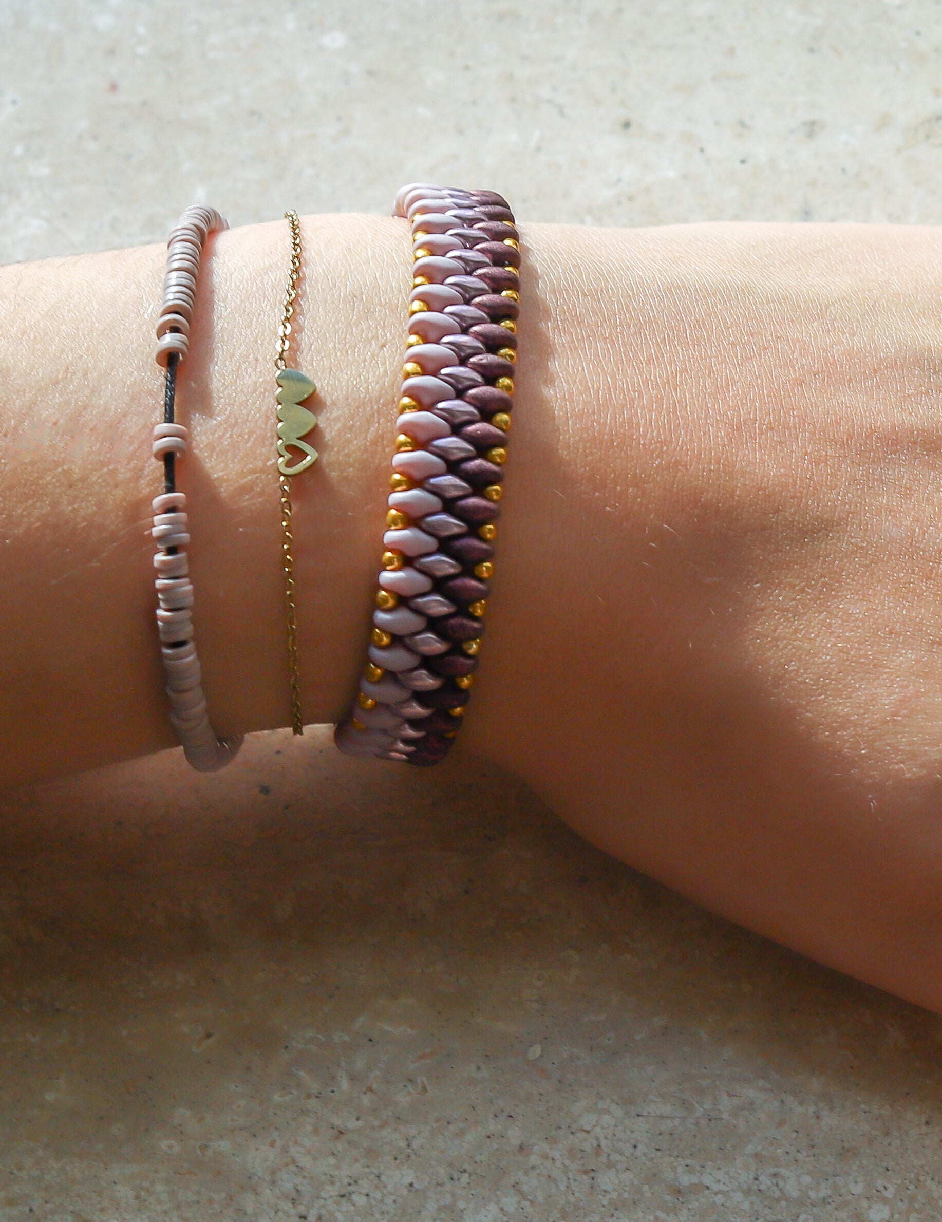 Kralen armband gelegen in een 3 dubbele rij van een prachtige kwaliteit Tsjechische glaskralen. Afgewerkt met goudkleurig stainless steel.