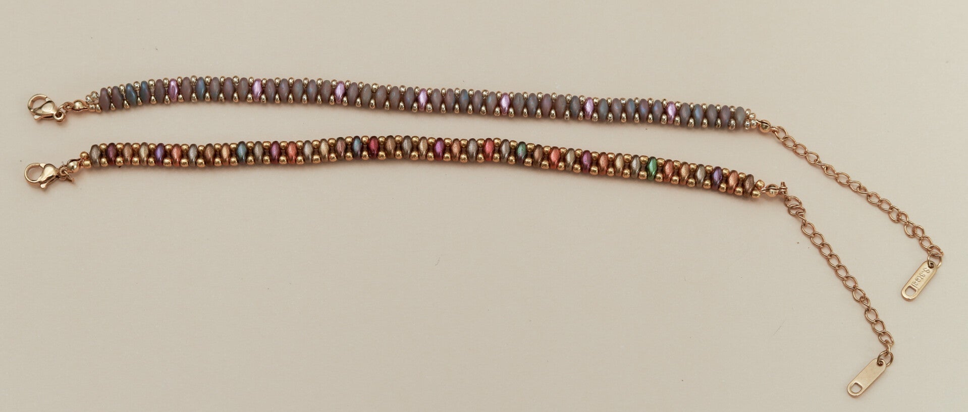 Mooie smalle armband van prachtige kwaliteits Tsjechische glaskralen. Afgewerkt met goudkleurig stainless steel.