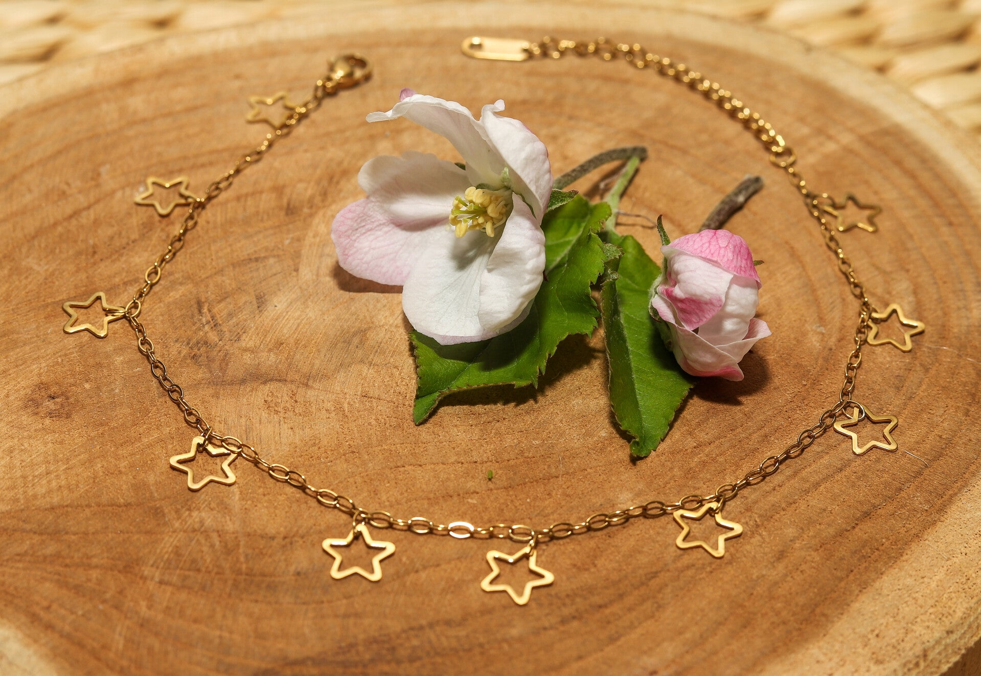 Stainless steel enkelbandje met bengelende open sterren in goud en zilver