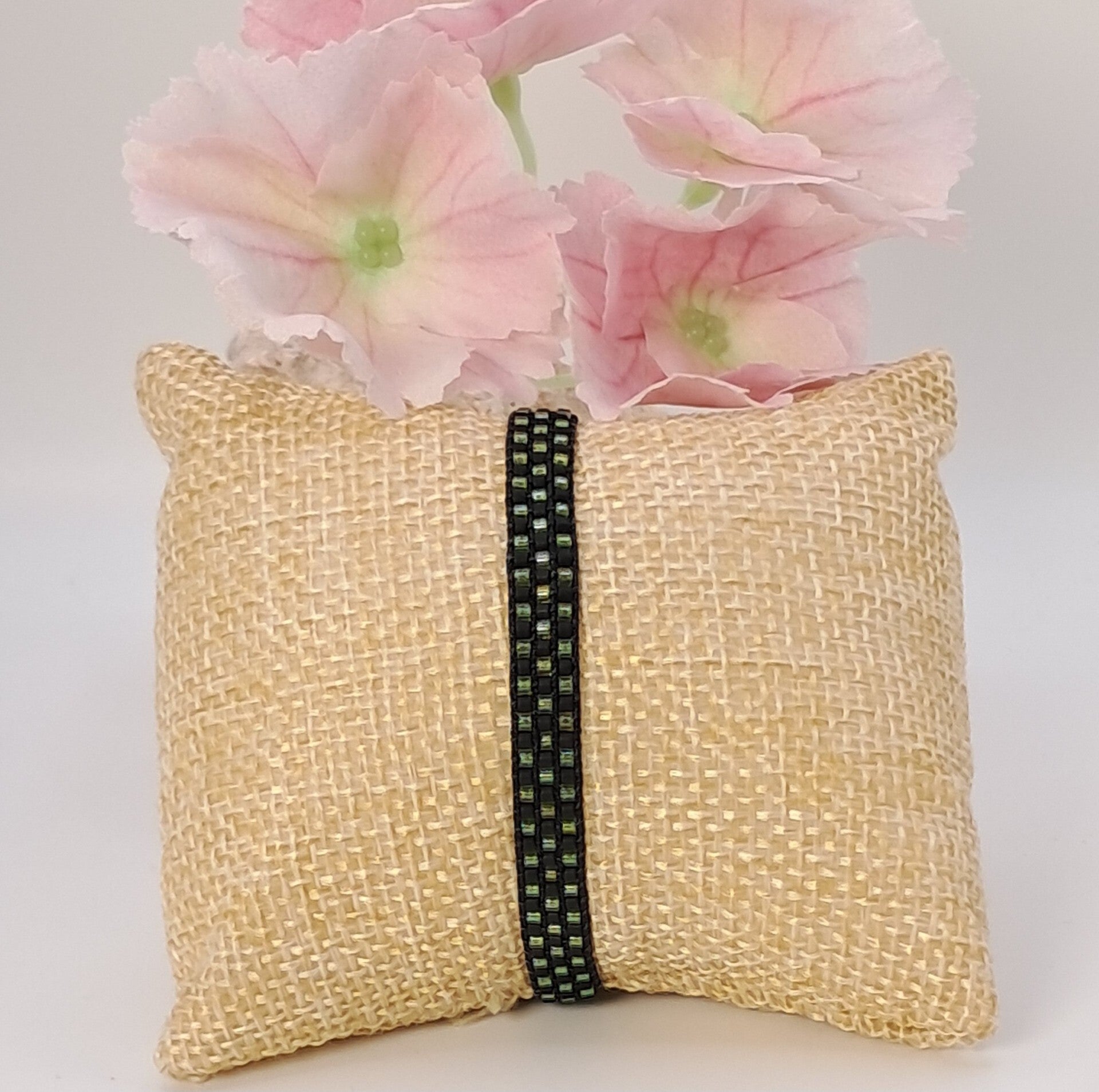 Deze kralenarmband is geweven op een weefraam met myuki kraaltjes. De armband is met grote zorgvuldigheid voor u gemaakt. Deze armband is geschikt voor polsmaat 14 -17 cm
