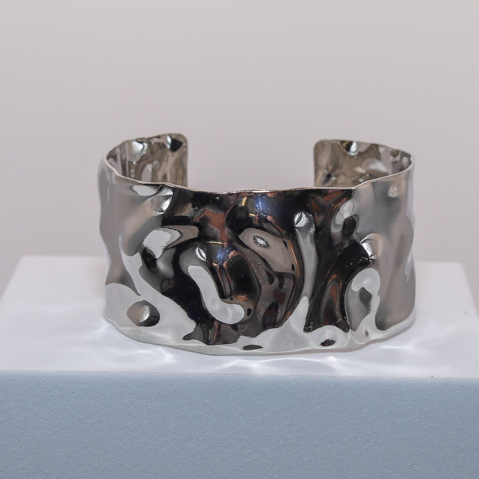 Trendy hamerslag cuff armband goud of zilverkleurig stainless steel.